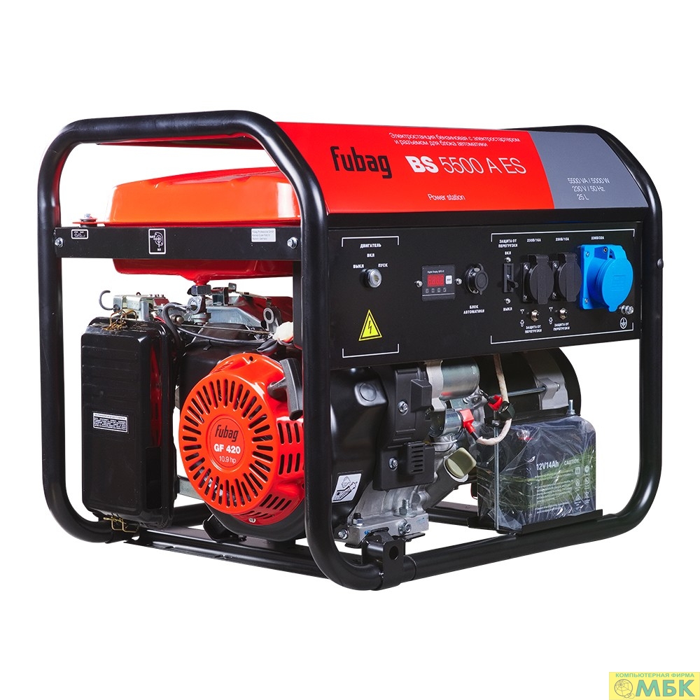 FUBAG BS 5500 A ES Электростанция бензиновая [641691\646279] {Электростартер, 5.5 кВа/5.0 кВт, 230 В, 420 объем см3, 8,0/10,9 кВт, л.с., 78 дБ 7м, Время работы 3/4 нагрузки 9.8ч, 25 л бак, 80.6 кг}