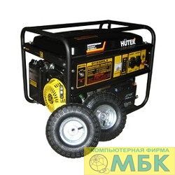 Huter DY6500LX 64/1/15 Электрогенератор {с колёсами и аккум четырехтактный, 5000Вт, 220В/50Гц, 81Дб,принудит охлаждение,бак 22 л,расход бенз 374 г/кВтч,расход масла 6,8, габариты700х535х570 вес 74 кг}