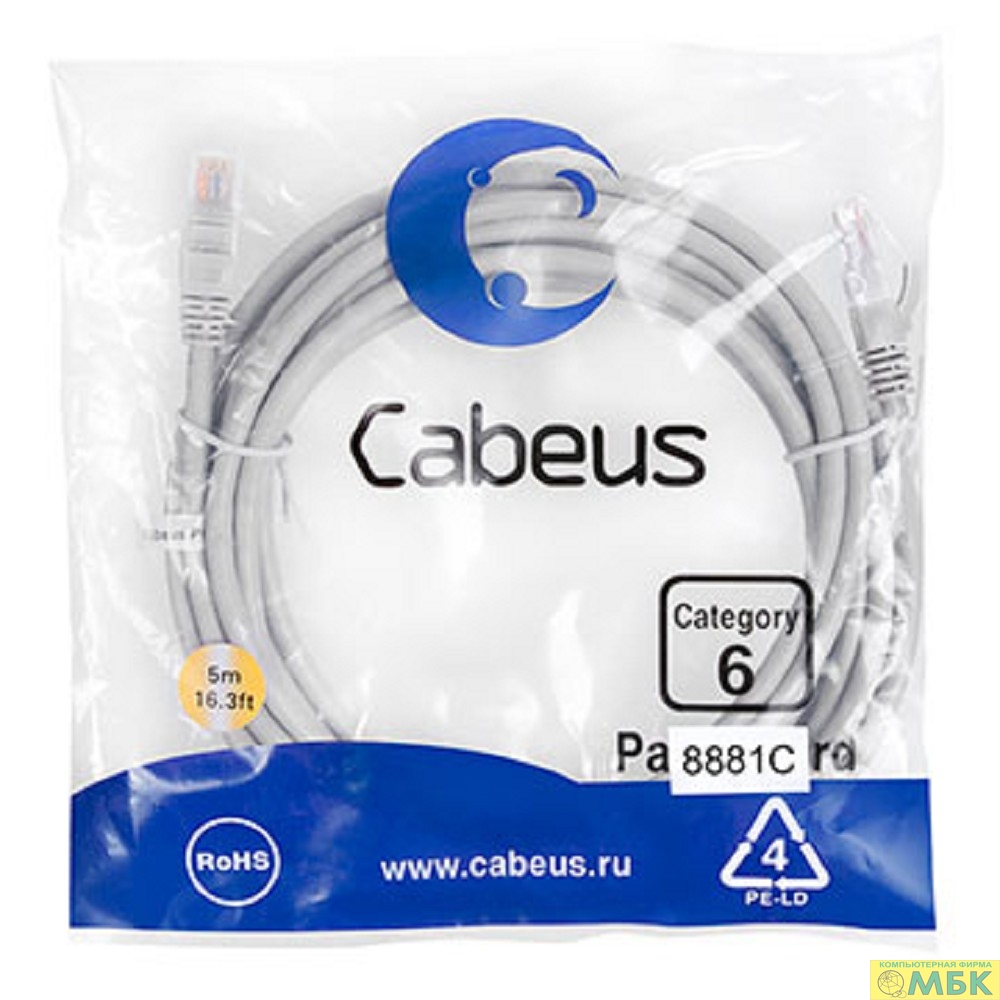 Cabeus PC-UTP-RJ45-Cat.6-5m-LSZH Патч-корд U/UTP, категория 6, 2xRJ45/8p8c, неэкранированный, серый, LSZH, 5м