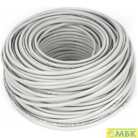 Rexant (01-0043-100) Кабель витая пара U/UTP, CAT 5e, PVC, 4PR, 24AWG, INDOOR, SOLID, серый, 100м,