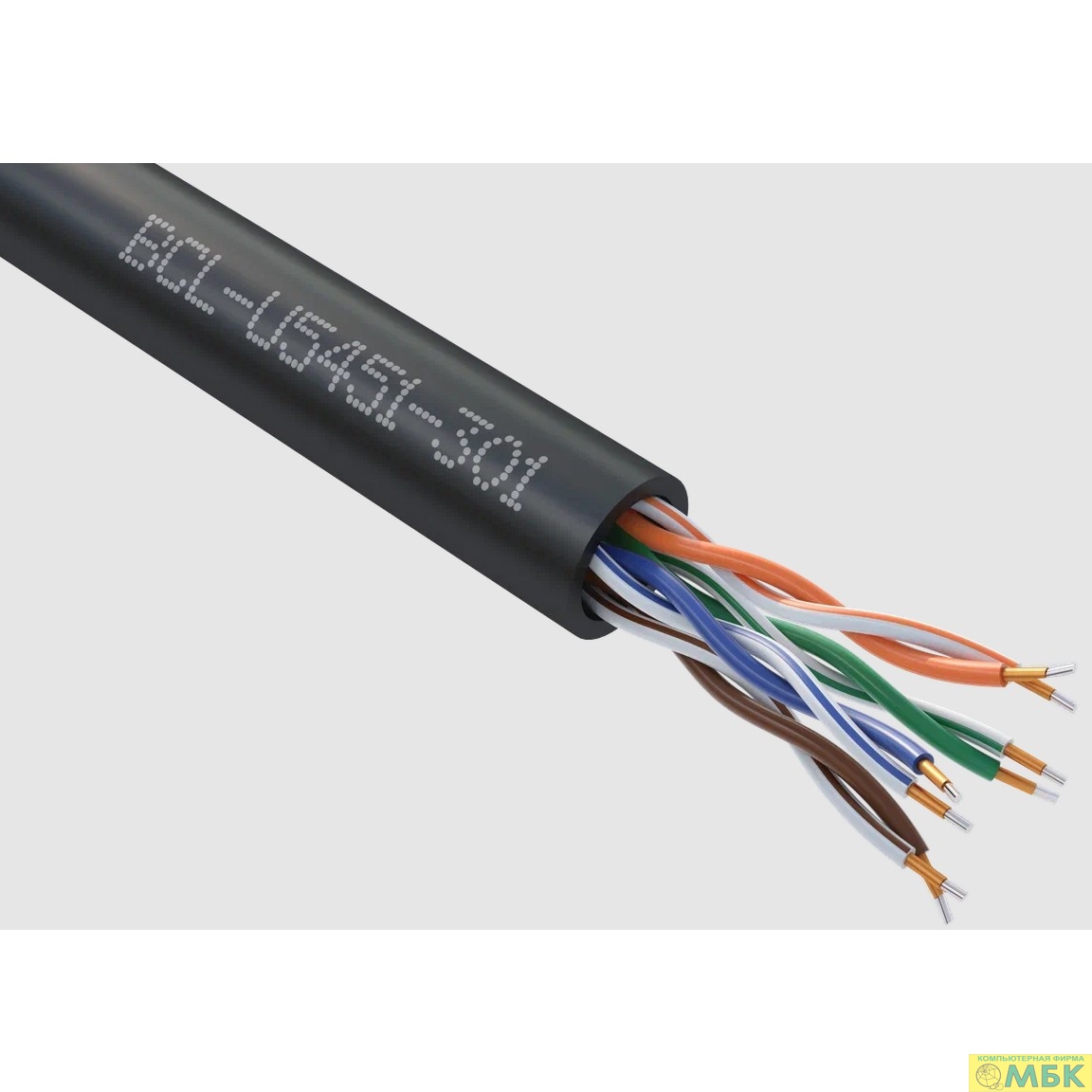 Кабель витая пара Bion BCL-U5451-301 U/UTP, кат.5e, 4x2x0,51мм AWG24, CCA, одножильный, PE, для внешней прокладки, 305м, черный
