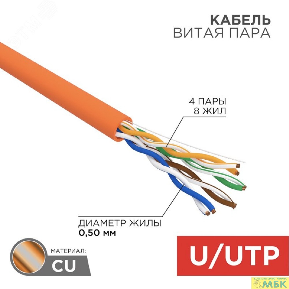 Rexant (01-0049) Кабель витая пара U/UTP, CAT 5e, ZH нг(А)-HF, 4PR, 24AWG, INDOOR, SOLID, оранжевый, 305м