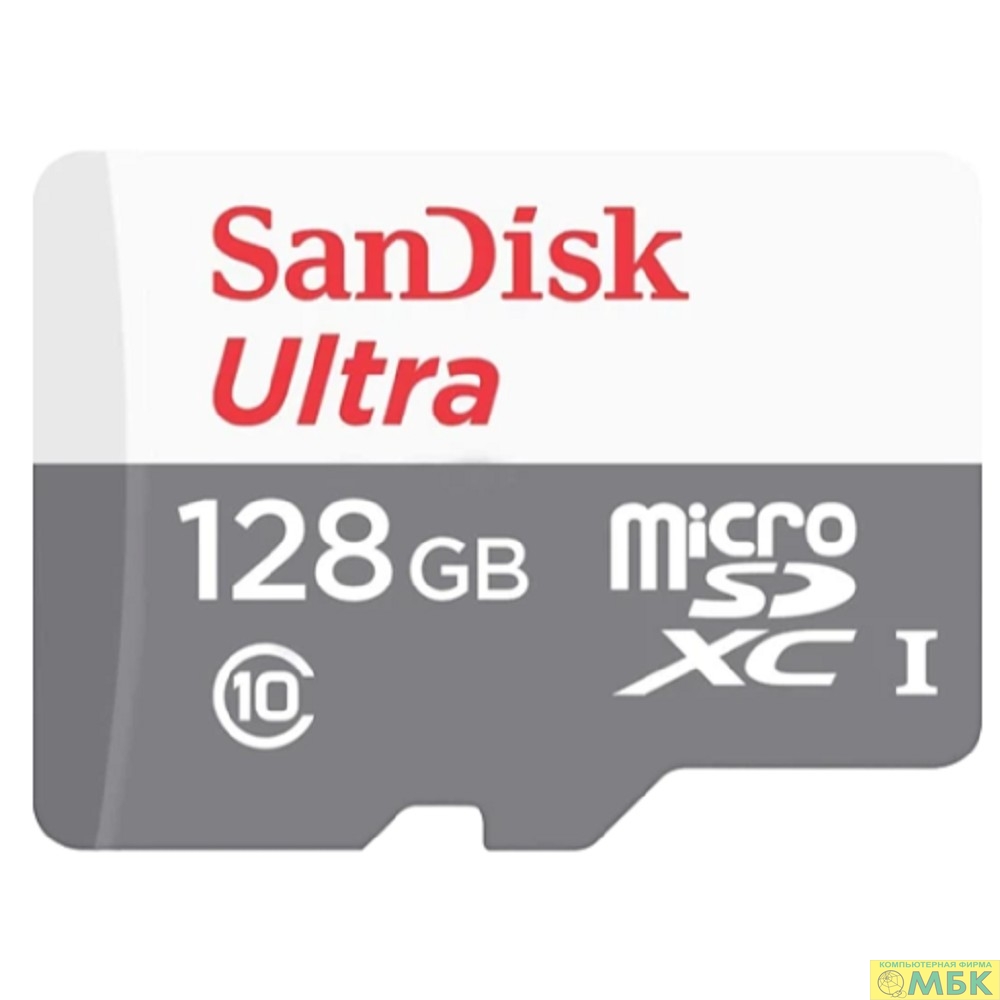 Micro SecureDigital 128GB SanDisk Ultra Class 10, UHS-I, R 100 МБ/с, <SDSQUNR-128G-GN3MN> адаптер на SD"
