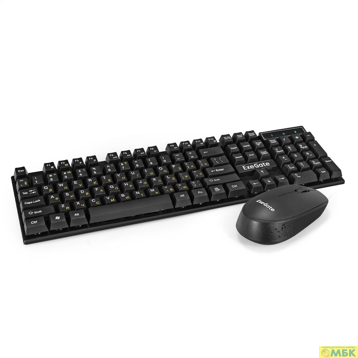 Exegate EX295304RUS Комплект беспроводной ExeGate Professional Standard Combo MK210 (клавиатура полноразмерная влагозащищенная 104кл. + мышь оптическая 1200dpi, 3 кнопки и колесо прокрутки; USB, радио