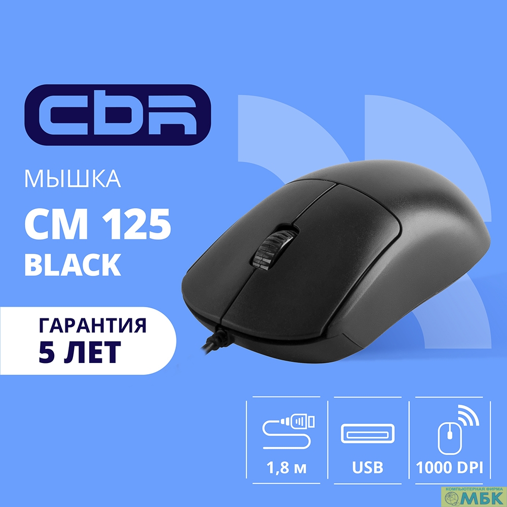 CBR CM 125 Black USB, Мышь офисн., оптич., 1000dpi, 3 кн., 1,8 м