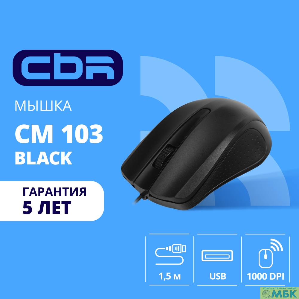 CBR CM 103 Black USB, Мышь офисн., оптич., 1000 dpi, 3 кн., 1,5 м