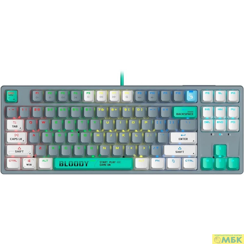 Клавиатура проводная A4Tech Bloody S87 Energy grey/green (механическая, USB, for gamer, LED) (S87 USB ENERGY ASH)