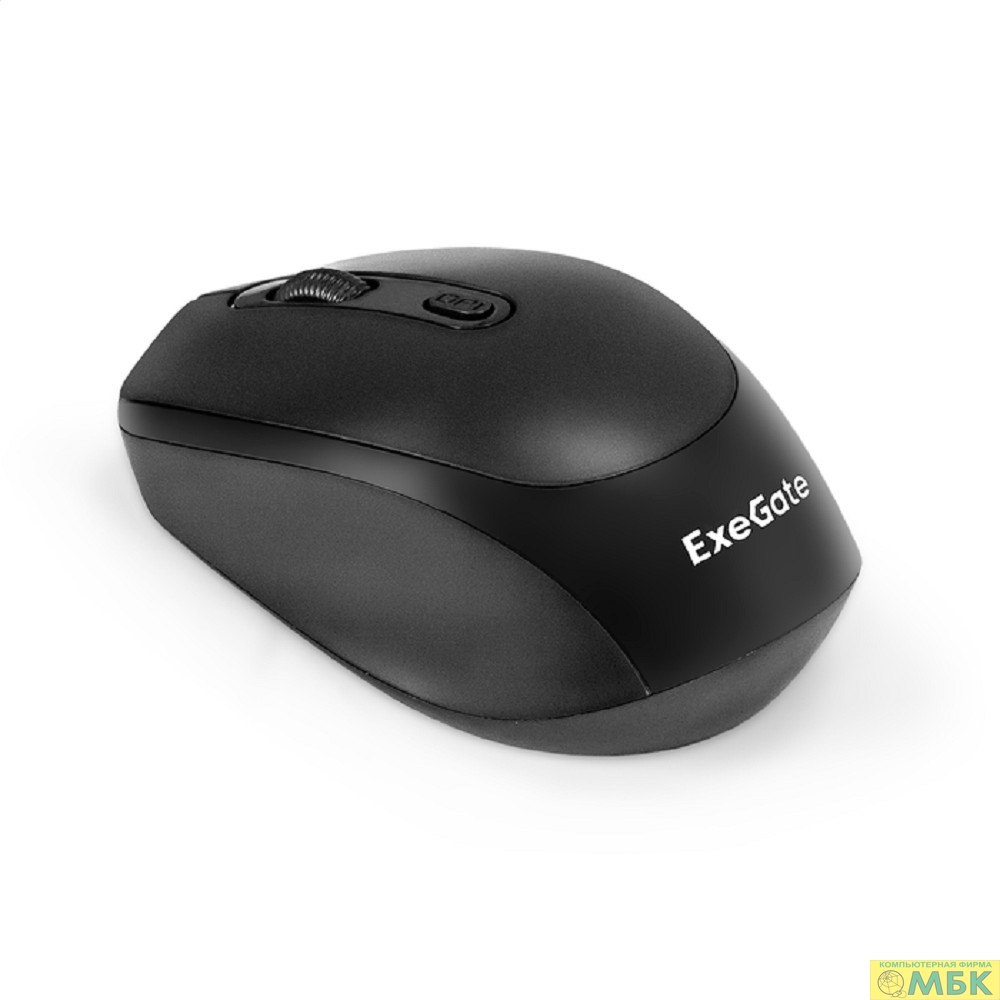 Exegate EX298896RUS Беспроводная мышь ExeGate Professional Standard SR-9005 (радиоканал 2,4 ГГц, USB, оптическая, 1200dpi, 4D, 4 кнопки и колесо прокрутки, черная, RTL)