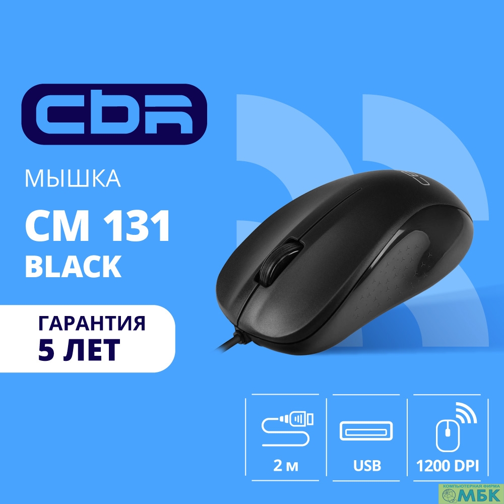 CBR CM 131 Black, USB, Мышь офисн., оптич., 1200 dpi, 3 кн., 2.0 м, резиновое колесо прокрутки, ABS-пластик