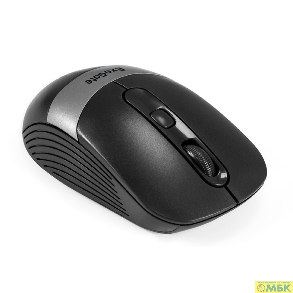 Exegate EX298895RUS Беспроводная мышь ExeGate Professional Standard FG-10 Grey (радиоканал 2,4 ГГц, USB, оптическая, 1200dpi, 4D, 4 кнопки и колесо прокрутки, черная, серая вставка, RTL)
