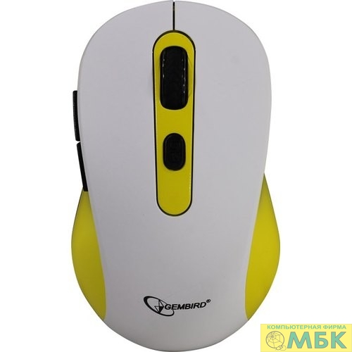 Gembird MUSW-221-Y {Мышь беспров., белый/жёлтый, 5кн.+колесо-кнопка, 800/1200/1600DPI, 2.4ГГц, трехуровневая система энергосбережения}