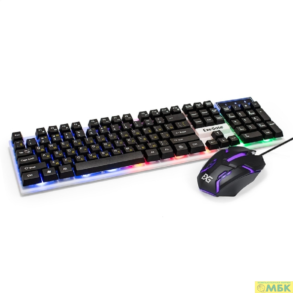 Exegate EX295301RUS Комплект ExeGate Professional Standard Combo MK140 с подсветкой (клавиатура влагозащищенная 104кл. + мышь оптическая 1000dpi, 3 кнопки и колесо прокрутки, длина кабелей 1,5м; USB,