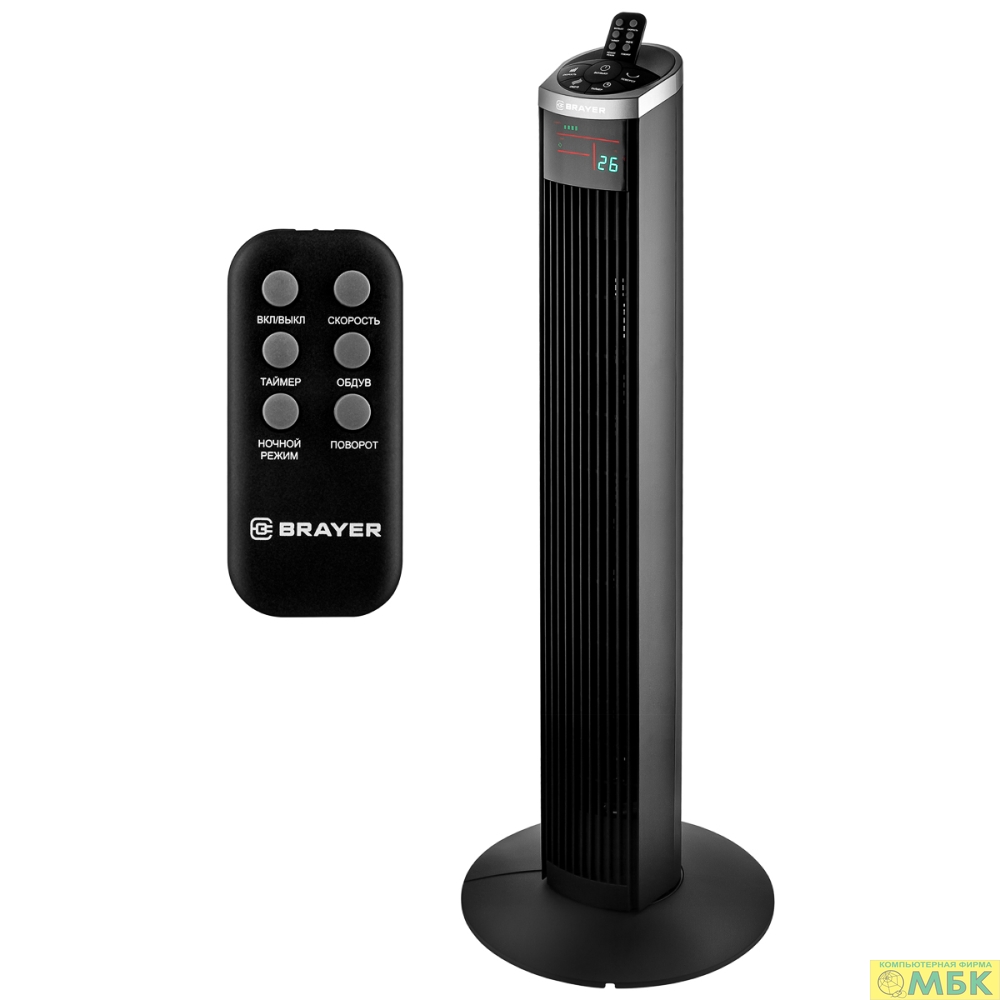 BRAYER BR4958BK Колонный вентилятор BRAYER, механ.упр.,пульт ДУ,вращение90°,мощ-ть50Вт,защита от перегрева