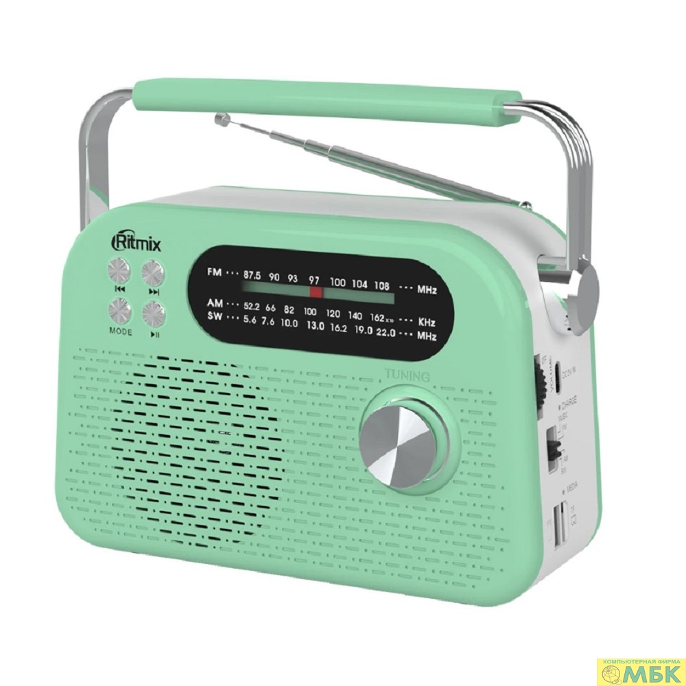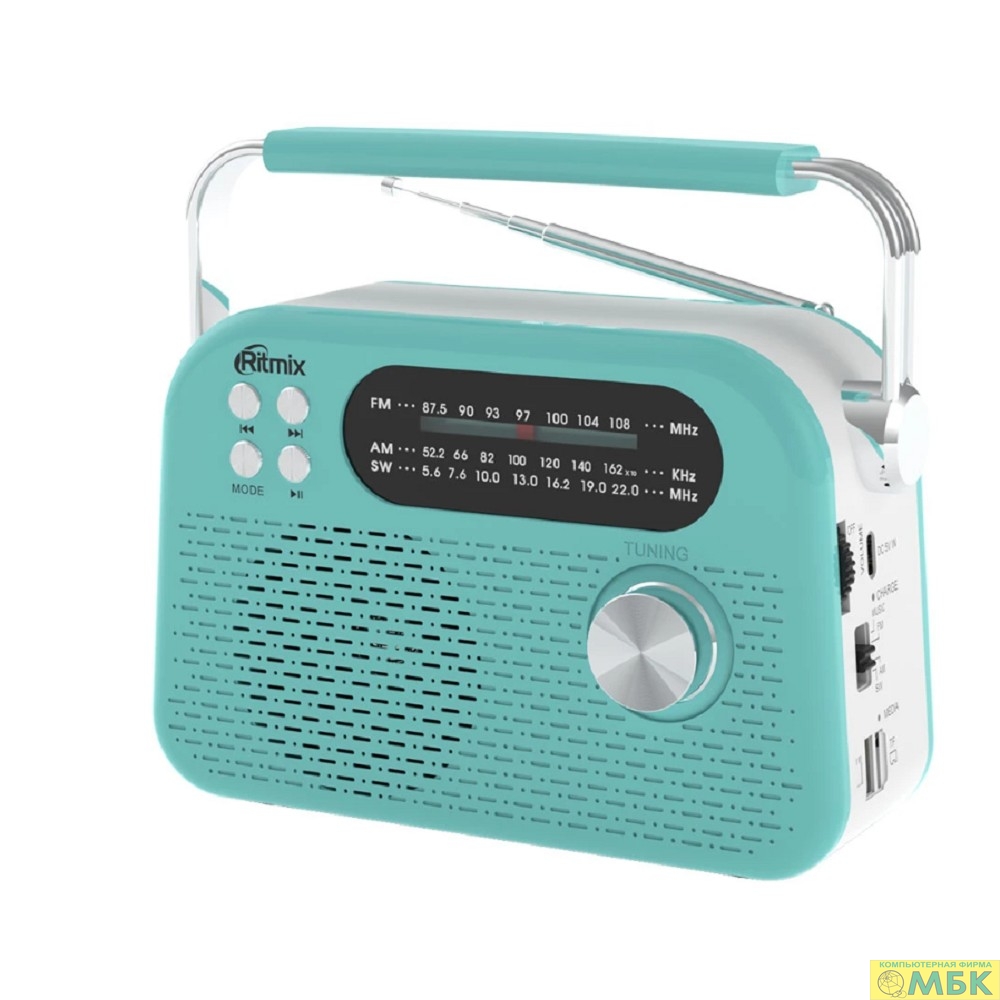 RITMIX RPR-045 MINT {Радиоприёмник портативный 3хдиапазонный FM/AM/SW,Bluetooth v.5.3, воспроизв. с USB и с карт пам. micro SD (до 32Gb)}