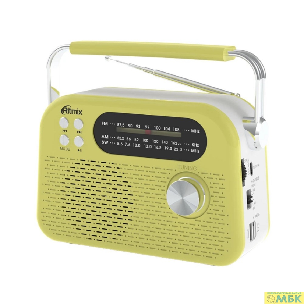 RITMIX RPR-045 LEMON {Радиоприёмник портативный 3хдиапазонный FM/AM/SW,Bluetooth v.5.3, воспроизв. с USB и с карт пам. micro SD (до 32Gb)}