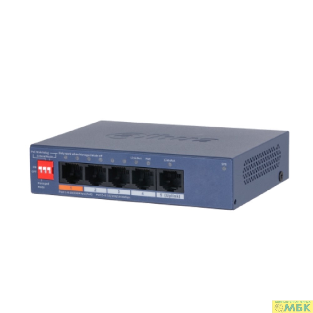 DAHUA DH-CS4005-4ET1GT-60 4-портовый гигабитный PoE коммутатор с функцией облачного управления, 4xRJ45 100Mb, 1xRJ45 1Gb uplink, суммарно 60Вт