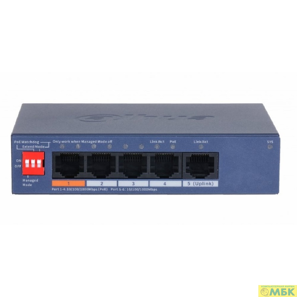 DAHUA DH-CS4005-4GT-60 4-портовый гигабитный PoE коммутатор с функцией облачного управления, 4 RJ45 10/100/1000Мбит/с (PoE/PoE+/Hi-PoE), 1 RJ45 10/100/1000Мбит/с (uplink), суммарно 60Вт
