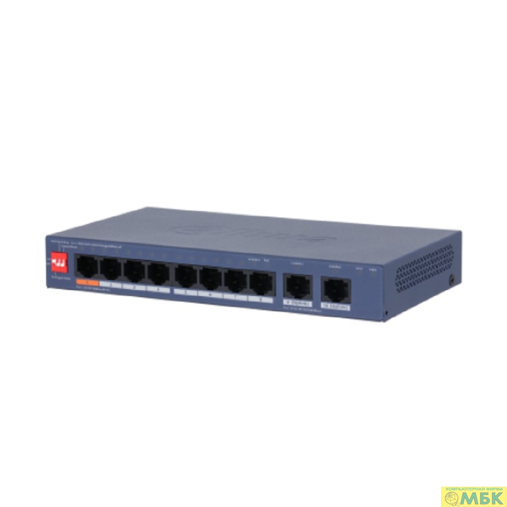 DAHUA DH-CS4010-8ET2GT-60 8-портовый PoE коммутатор управляемый 8 RJ45 10/100Мбит/с (PoE/PoE+/Hi-PoE), 2 RJ45 10/100/1000Мбит/с (uplink); до 60Вт, до 250м