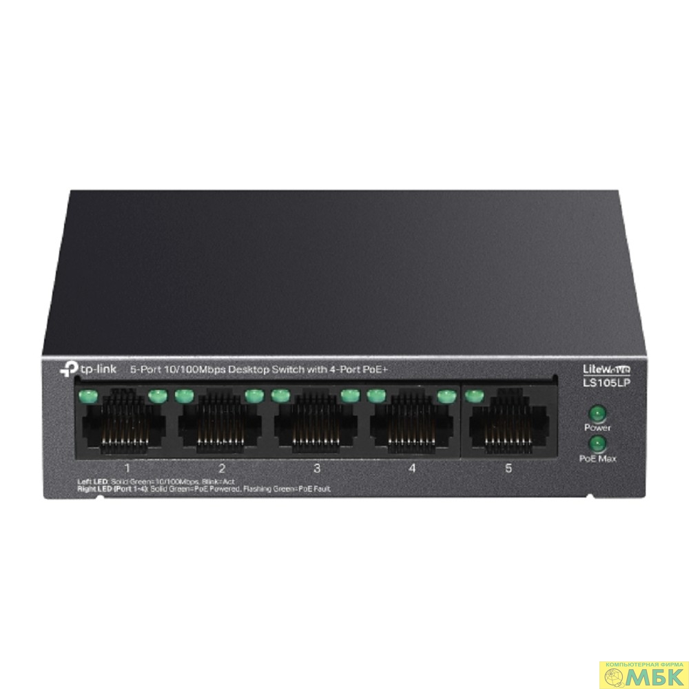 TP-Link LS105LP Настольный коммутатор с 5 портами 10/100 Мбит/с (4 порта PoE)