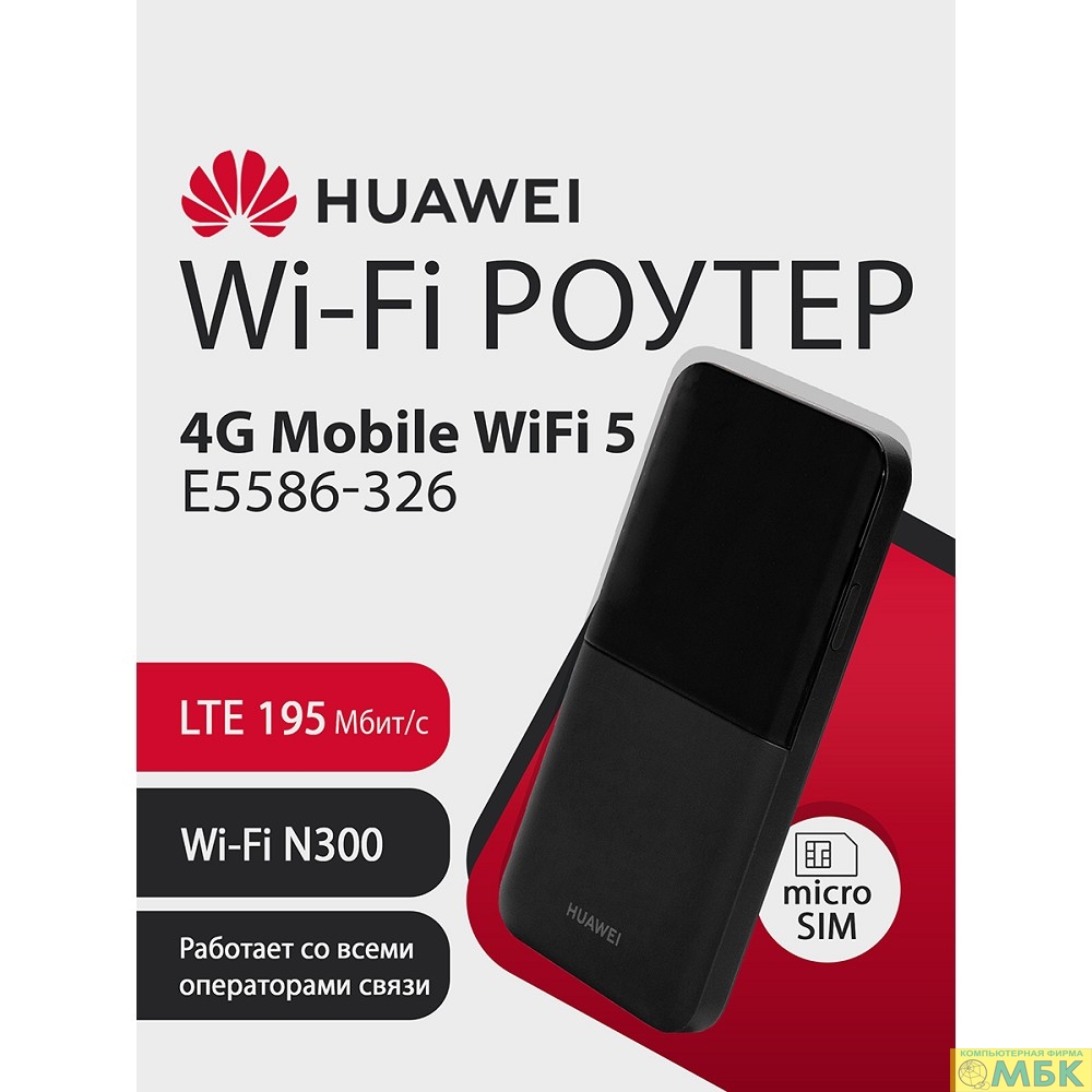HUAWEI 51071VKC E5586-326 Mobile WiFi 5 Портативный Модем 4G, LTE Cat4., 3FF Micro-SIM, USB Type-C, 1500 мА*ч, BLACK