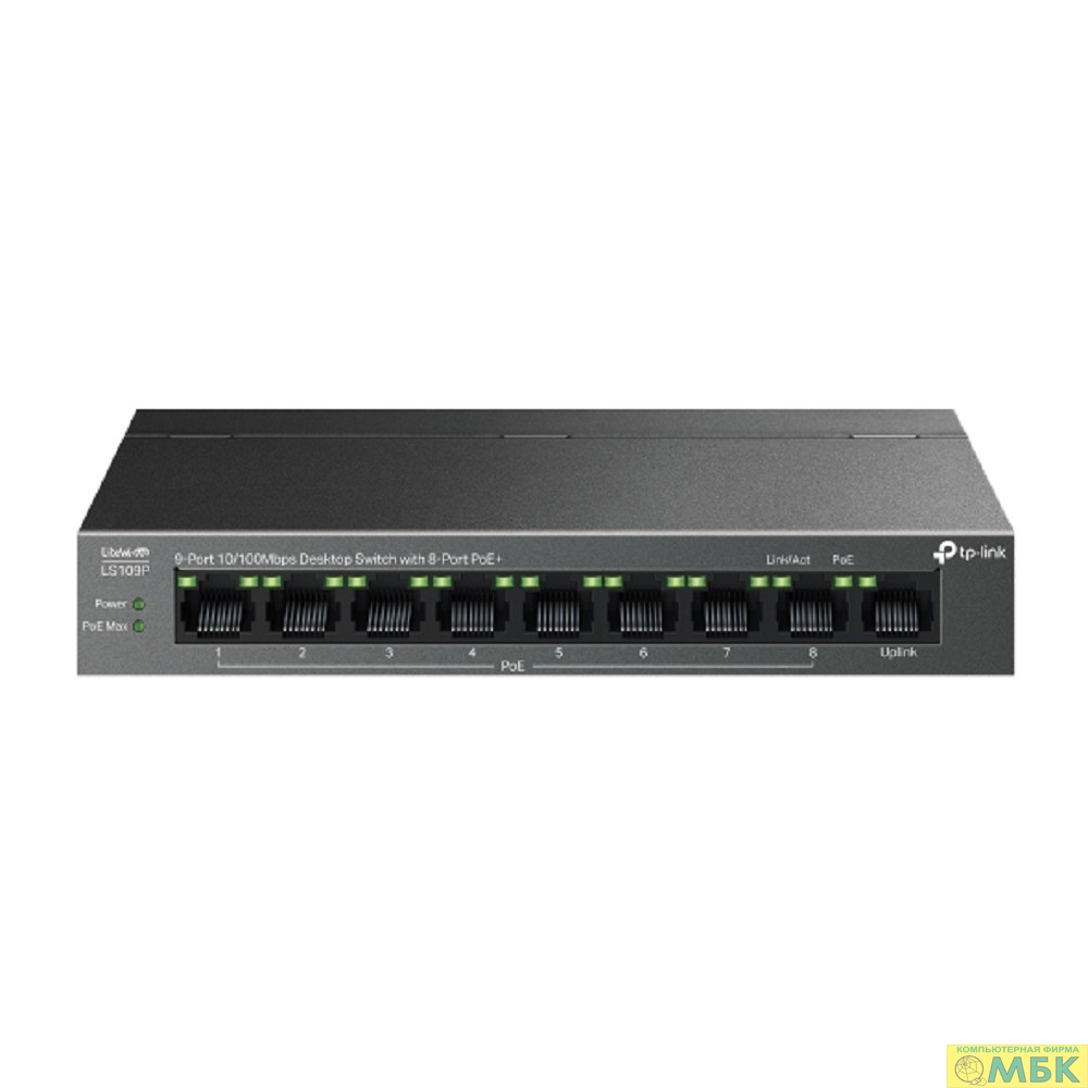 TP-Link LS109P Настольный коммутатор с 9 портами 10/100 Мбит/с (8 портов PoE+)