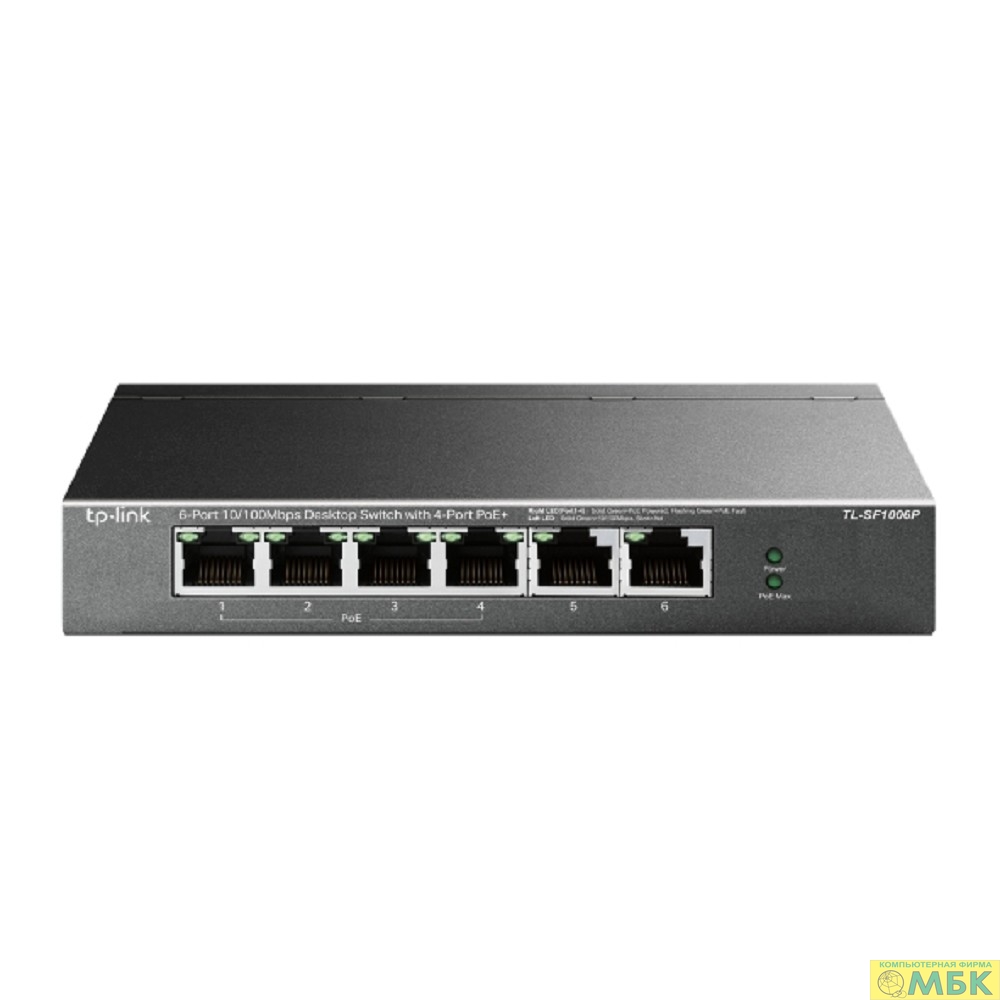 TP-Link TL-SF1006P Настольный коммутатор с 6 портами 10/100 Мбит/с (4 порта PoE+)