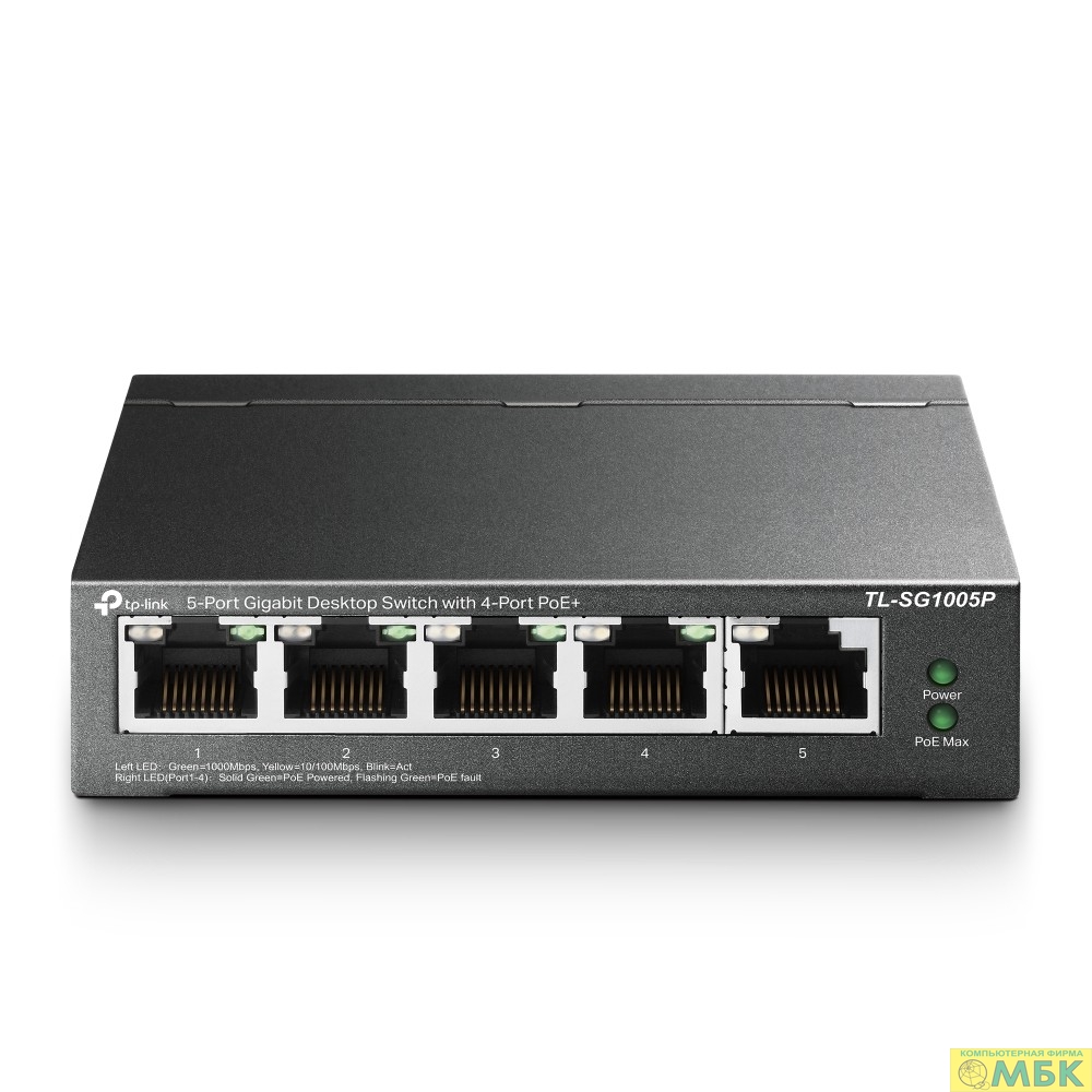 TP-Link TL-SG1005P Настольный коммутатор с 5 гигабитными портами (4 порта PoE+)