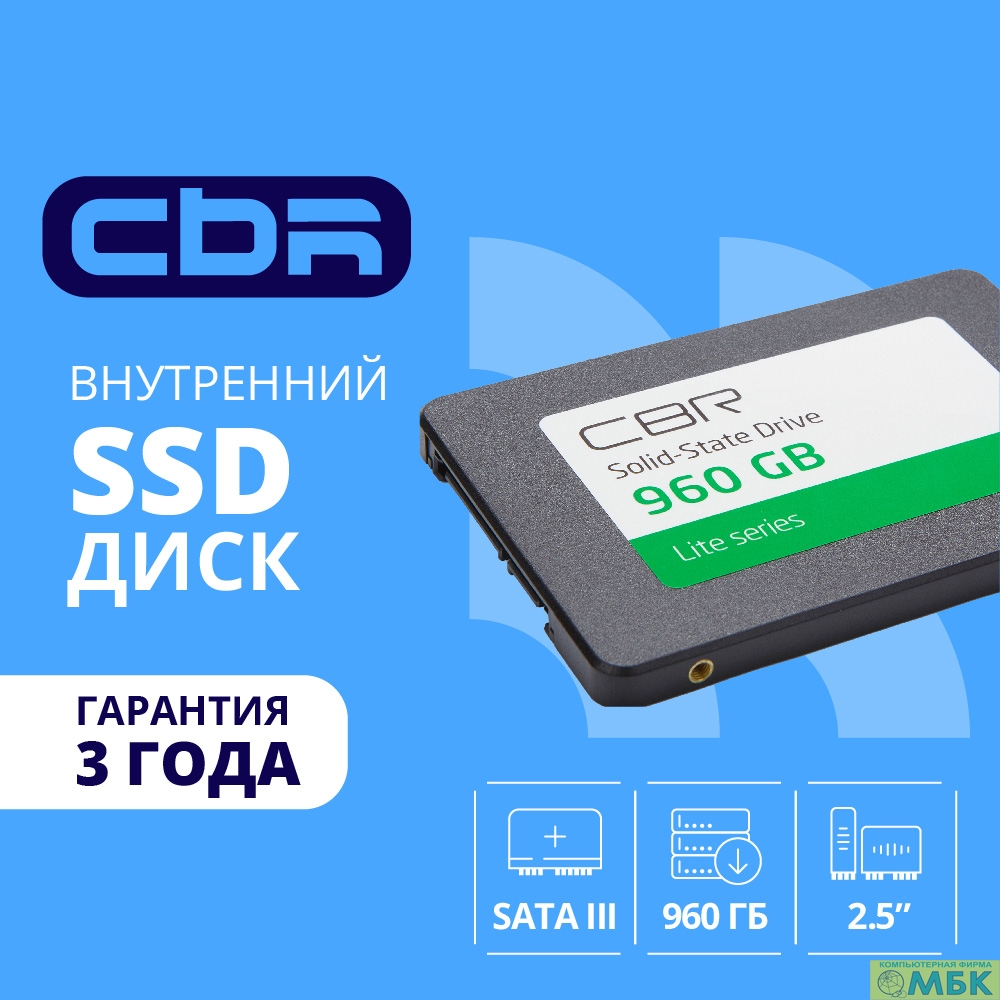 CBR SSD-960GB-2.5-LT22, Внутренний SSD-накопитель, серия "Lite", 960 GB, 2.5", SATA III 6 Gbit/s, SM2259XT, 3D TLC NAND, R/W speed up to 550/520 MB/s, TBW (TB) 480