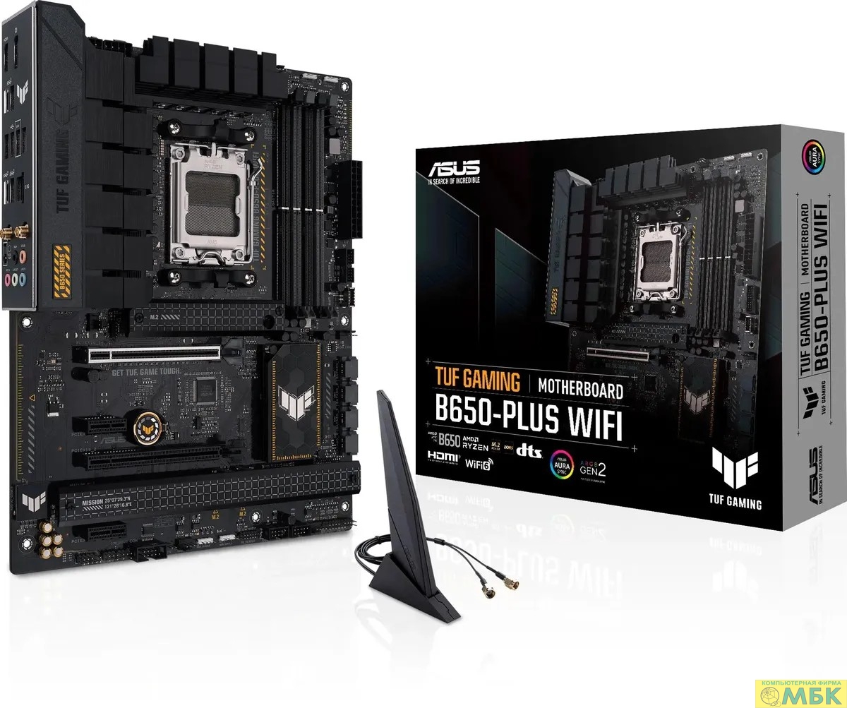 ASUS TUF GAMING B650-PLUS WIFI (Socket AM5, ATX, 4xDDR5(128GB), DP/HDMI, 2xPCIe 4.0x16/2xPCIe 4.0, 1xLAN (2.5GbE), 2x Wi-Fi 6, BT 5.2, 4xSATA 6Gb/s, 3xM.2, 1xType-C, 3xUSB 3.2, 4xUSB 2.0, ATX)