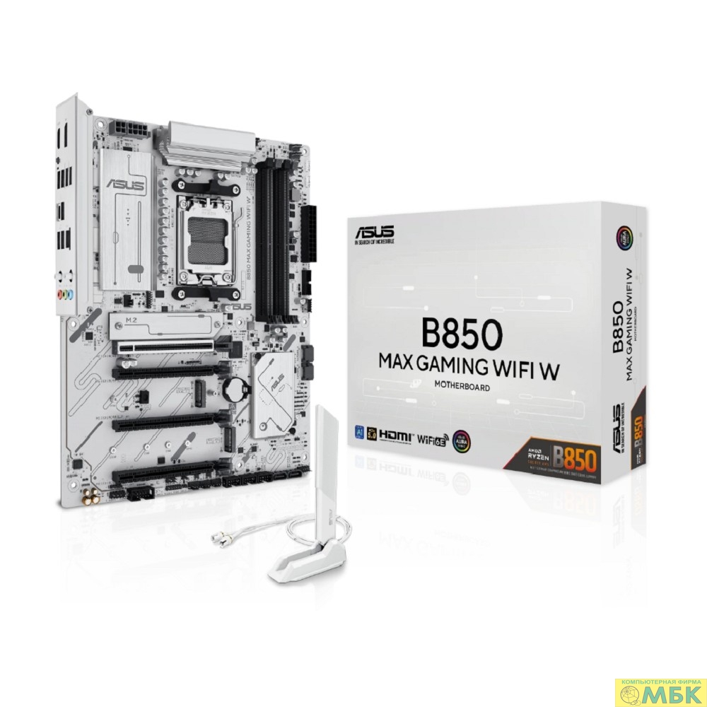 ASUS B850 MAX GAMING WIFI W (Socket AM5, ATX, 4xDDR5(256GB), DP/HDMI 2.1, 1xPCIe 5.0x16/1xPCIe 4.0x16/2xPCIe 3.0x16, 1xLAN (2.5GbE), Wi-Fi, BT, 4xSATA 6Gb/s, 3xM.2, 1*Type-C, 5xUSB 3.2, 2xUSB 2.0)