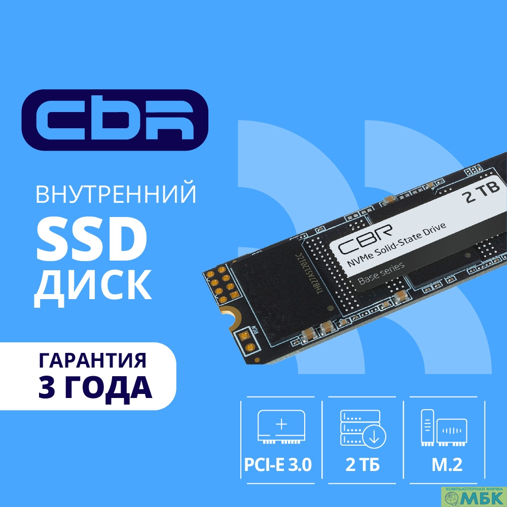 CBR SSD-002TB-M.2-BS24b, Внутренний SSD-накопитель, серия "Base", 2048 GB, 2TB, M.2 2280, PCIe 3.0 x4, NVMe 1.3, 3D TLC NAND, R/W speed up to 3500/3100 MB/s, TBW (TB) 1000, OEM