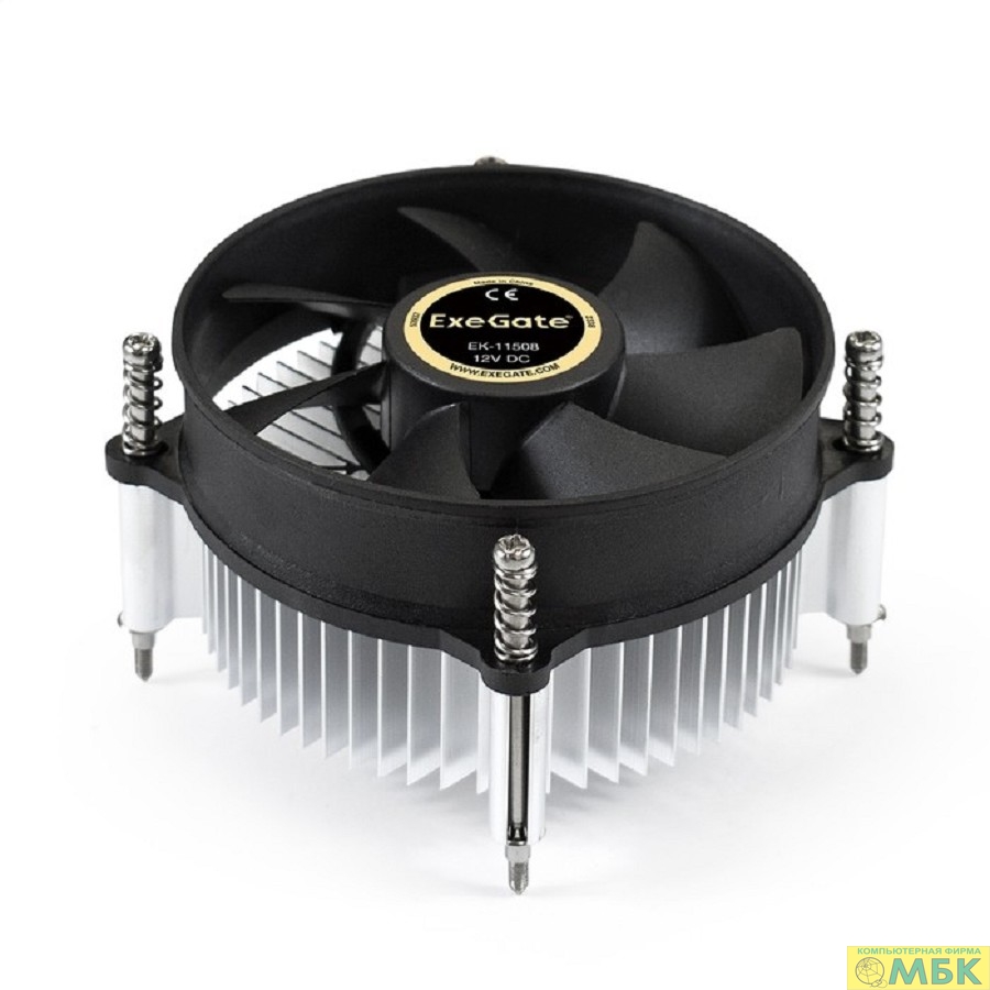 Exegate EX286138RUS Кулер ExeGate EK-11508 (Al, LGA1150/1151/1155/1156/1200, TDP 75W, Fan 90mm, 2200RPM, Hydro bearing, 3pin, 22db, 285г, с термопастой, на винтах, Retail color box)