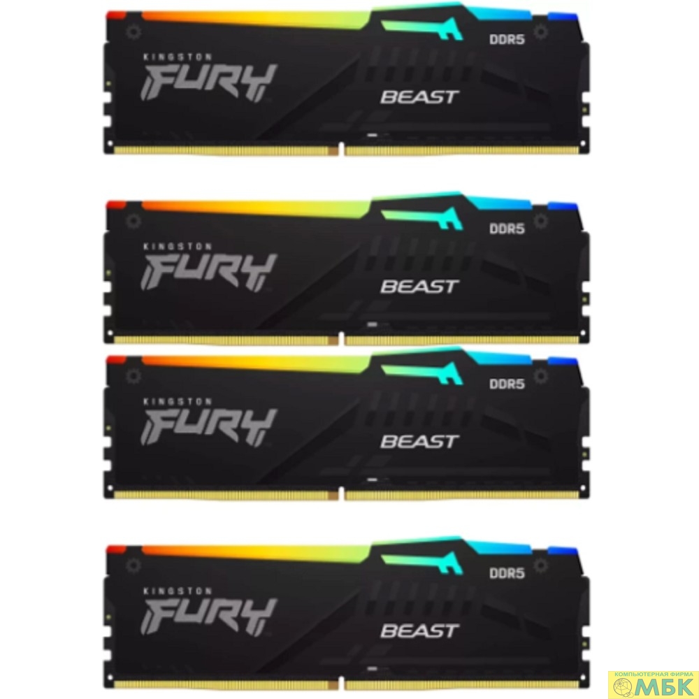 Kingston 64GB 5200MT/s DDR5 CL40 DIMM (Kit of 4) FURY Beast RGB XMP KF552C40BBAK4-64
