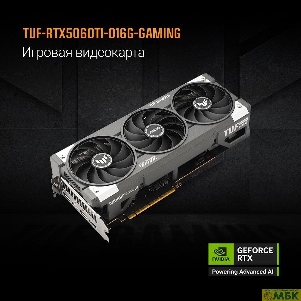 Видеокарта ASUS GeForce RTX5060TI 16Gb DDR7 128 bit 3*DP/HDMI 3FAN (TUF-RTX5060TI-O16G-GAMING) RTL