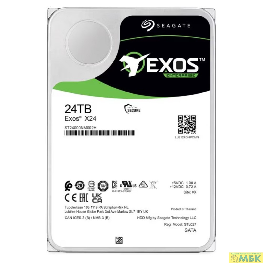 24TB Seagate Exos X24 (ST24000NM002H) {SATA 6Gb/s, 7200 rpm, 512mb buffer, 3.5"}