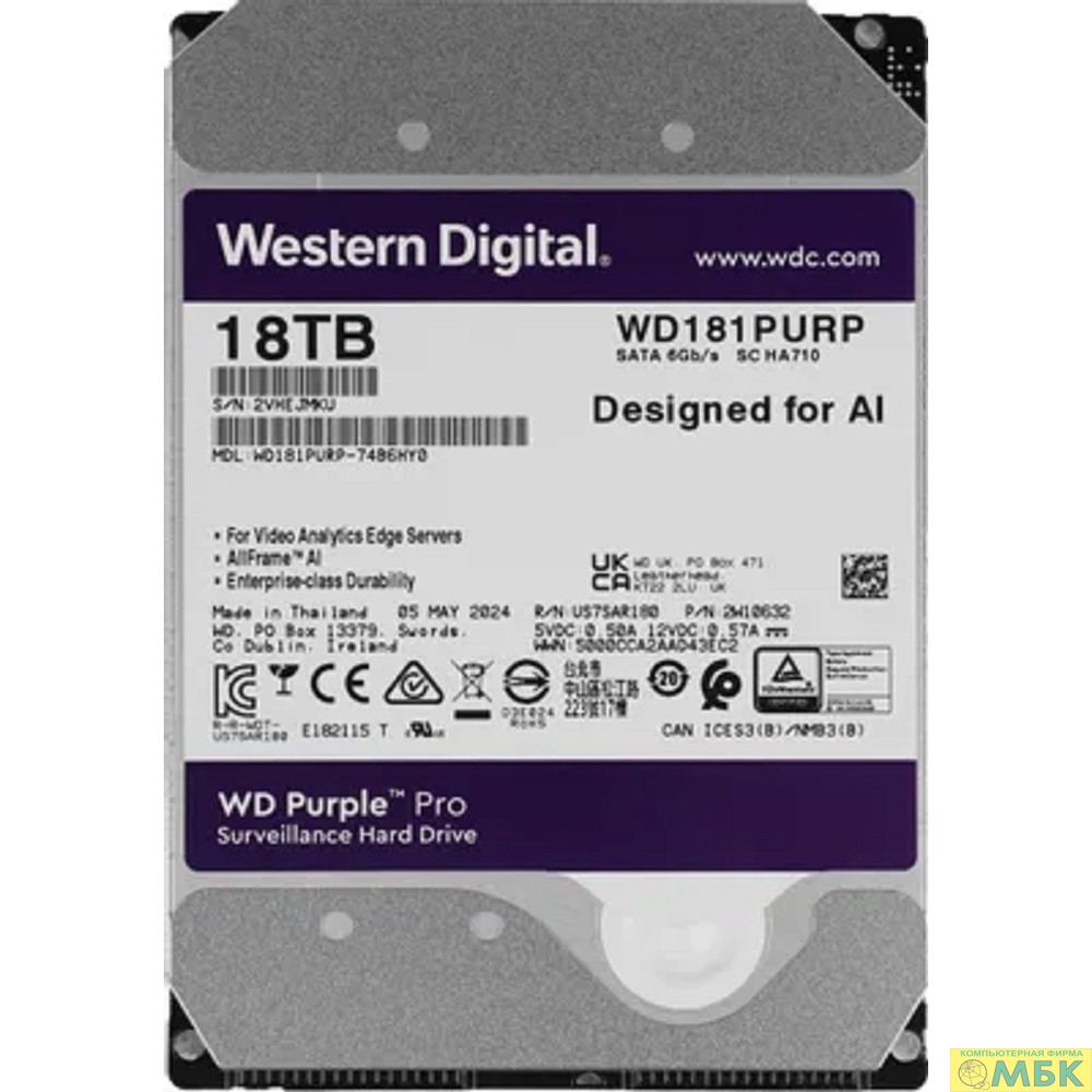 18TB WD Purple Pro (WD181PURP) {Serial ATA III, 7200- rpm, 512Mb, 3.5"}
