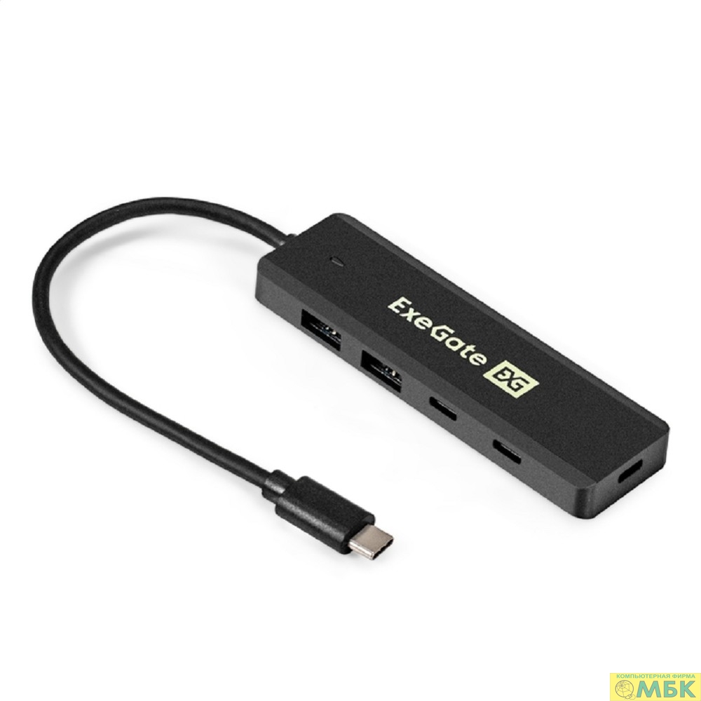 Exegate EX298176RUS USB-Хаб (концентратор) 4-в-1 ExeGate DUB-2C2P/5G (кабель-адаптер USB 3.2 Gen1 Type C --> 2xUSB3.2 Gen1 Type-A (5G)/2xUSB3.2 Gen1 Type-C (5G), SuperSpeed USB 5Gbps, Plug&Play, черны
