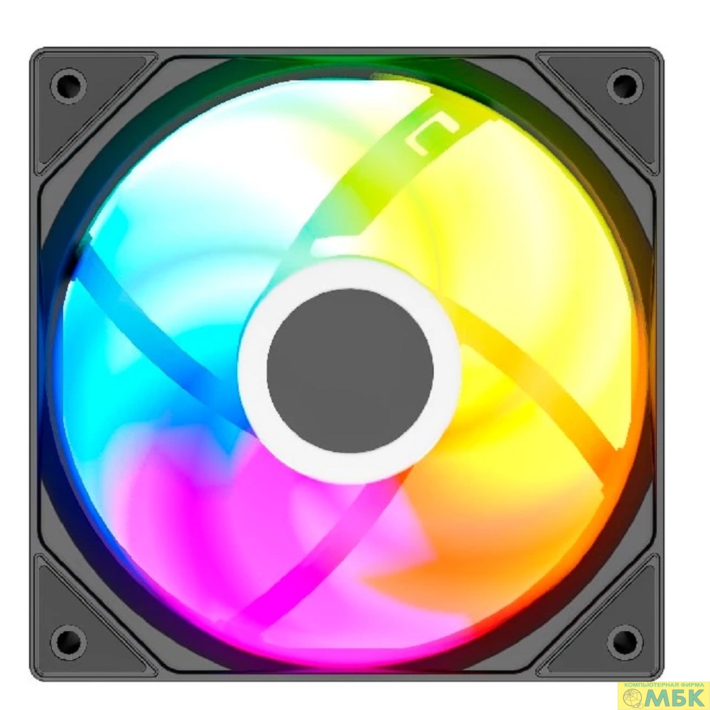 Powercase Вентилятор (M53-14 ARGB) Black 140x140x25mm (PWM, 80шт./кор, 4pin PWM (M+F)+ 3pin ARGB (M+F), 600-1800±10% об/мин) Bulk