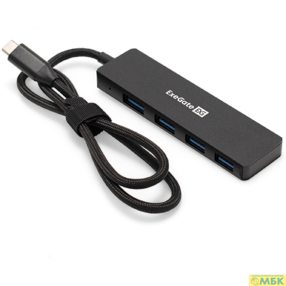 Exegate EX297631RUS USB-Хаб (концентратор) 4-в-1 ExeGate DUB-4C/3 (кабель-адаптер USB Type C --> 4xUSB3.0, Plug&Play, черный)