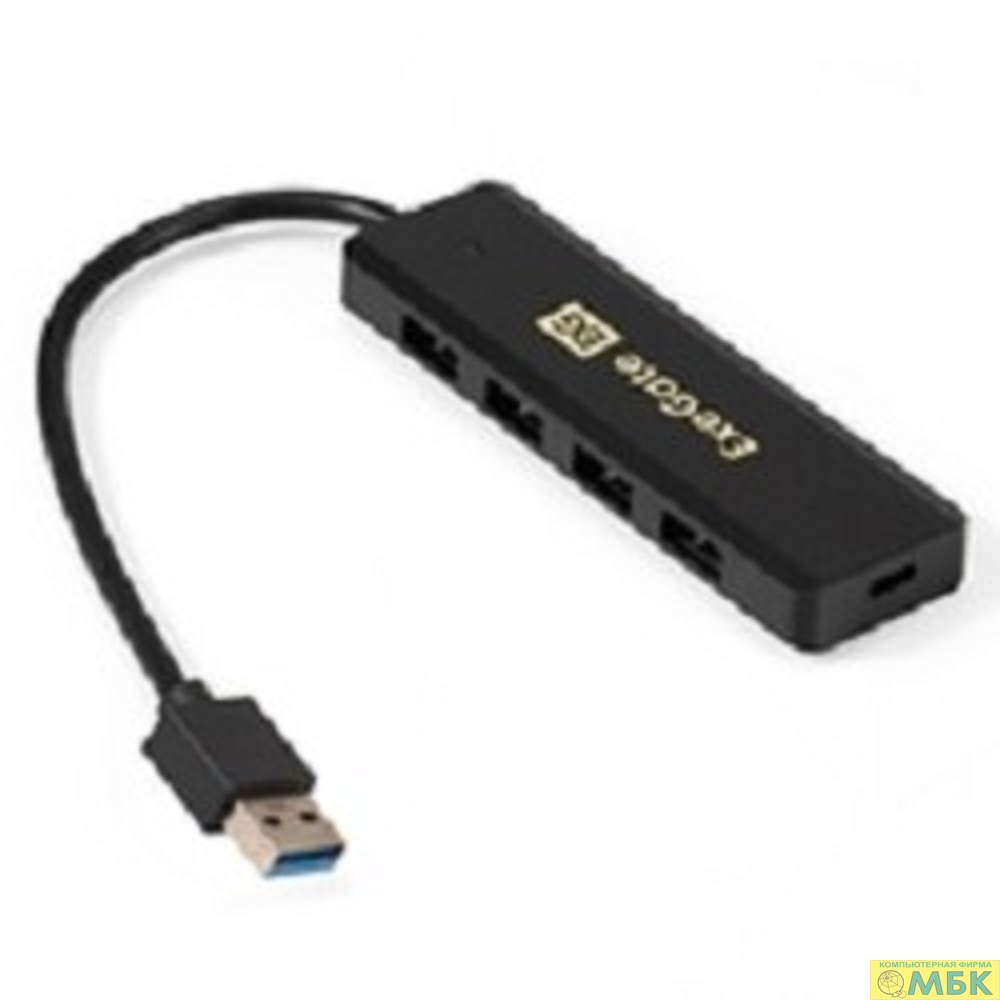 Exegate EX293980RUS USB-Хаб (концентратор) ExeGate DUB-4P/1 (кабель-адаптер USB3.0 --> 4xUSB3.0, Plug&Play, черный)