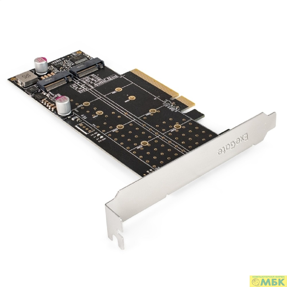 Exegate EX298298RUS Переходник ExeGate EXE-597E2 (2 x M.2 M key -> PCI-E x8 v3.0, для установки двух SSD M.2 2230/2242/2260/2280/22110 M key NGFF в слот PCI-E, материнская плата должна быть c функцией
