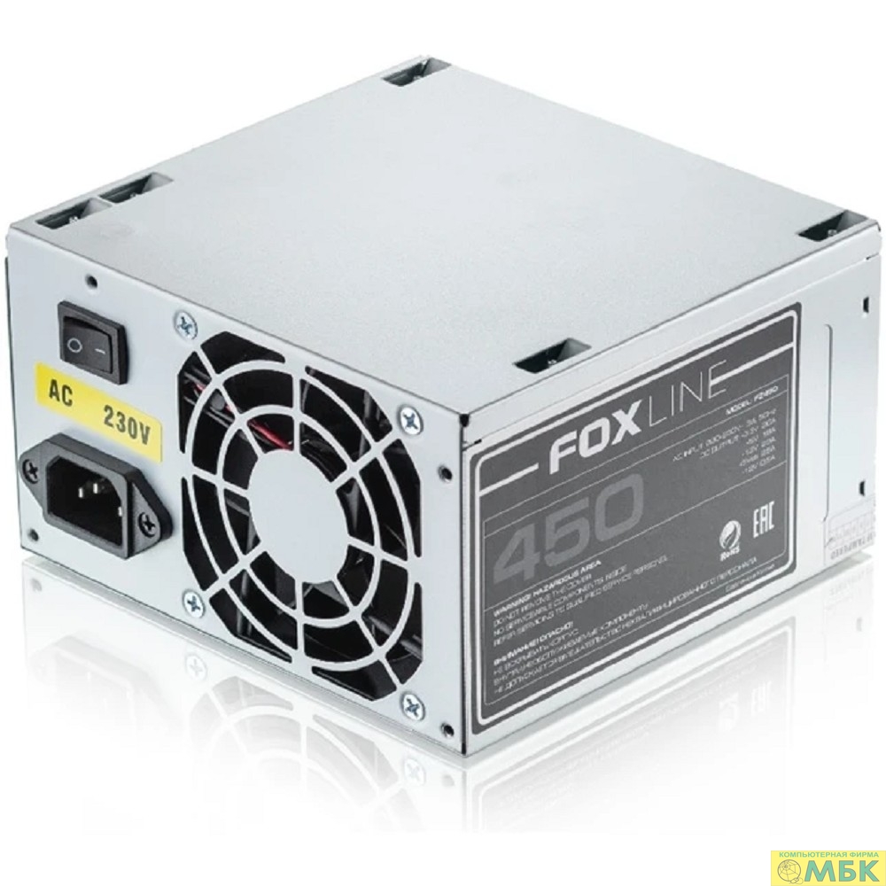 Блок питания Foxline FZ450 450W, ATX, NOPFC, 80FAN, 2xSATA, 2xPATA, 1xFDD, 24+4