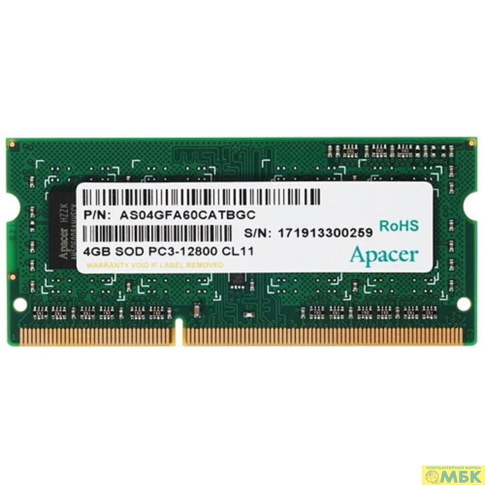 Apacer DDR3 SODIMM 4GB DS.04G2K.KAM PC3-12800, 1600MHz