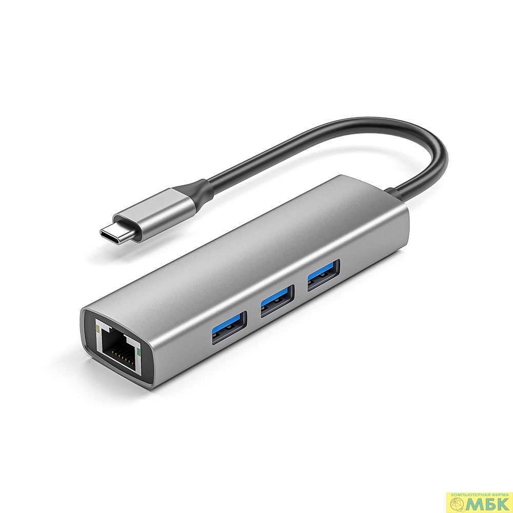 ORIENT JK-341N, Type-C разветвитель-сетевая карта USB 3.2 Gen1 (5 Гбит/c), порты: 3xUSB-A + RJ45 Gigabit Ethernet, RTL8153, 100/1000 Мбит/с, кабель USB Type-C, алюминиевый корпус, серебристый (33309)