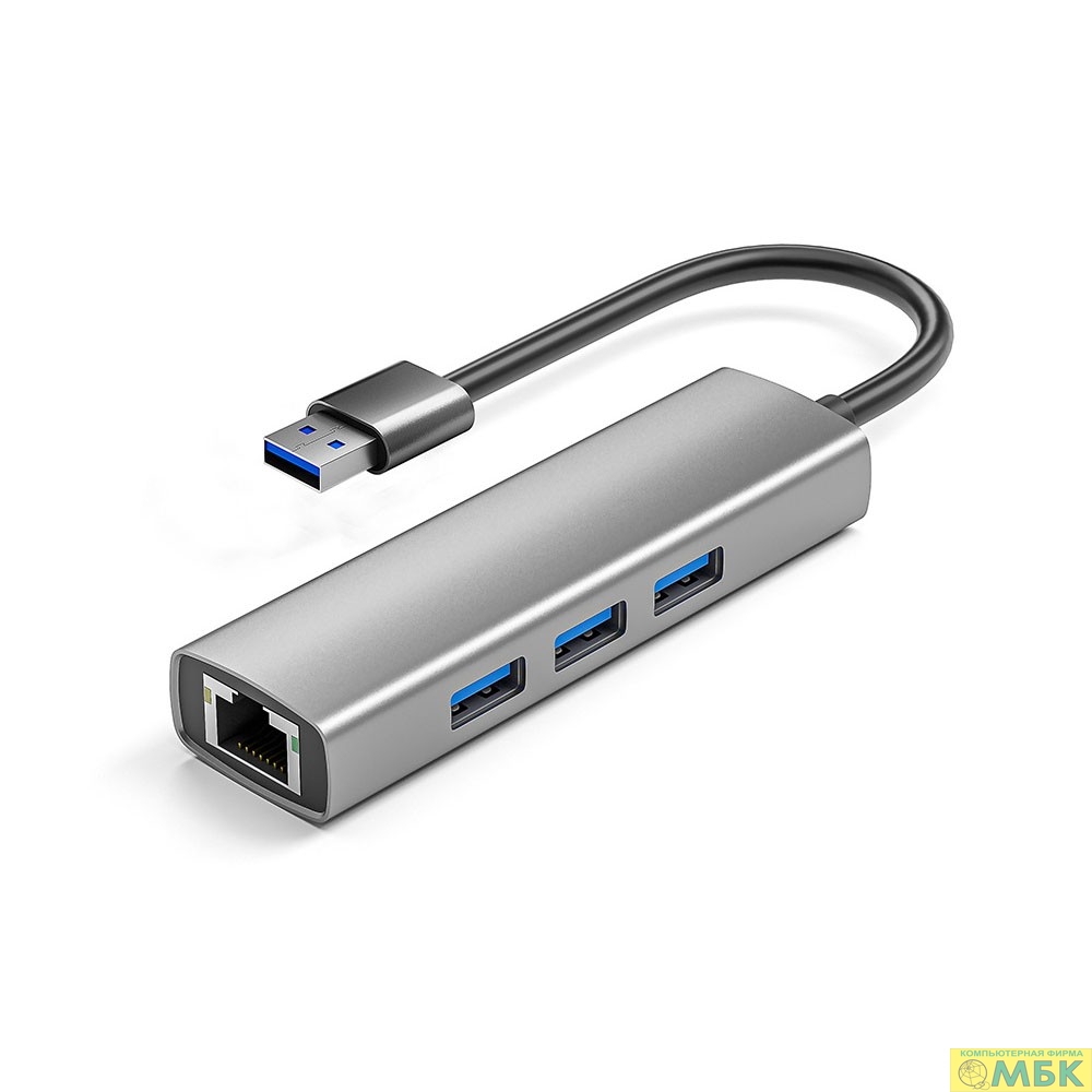 ORIENT JK-340N, разветвитель-сетевая карта USB 3.2 Gen1 (5 Гбит/c), порты: 3xUSB-A + RJ45 Gigabit Ethernet, RTL8153, 100/1000 Мбит/с, кабель USB Type-A, алюминиевый корпус, серебристый (33308)