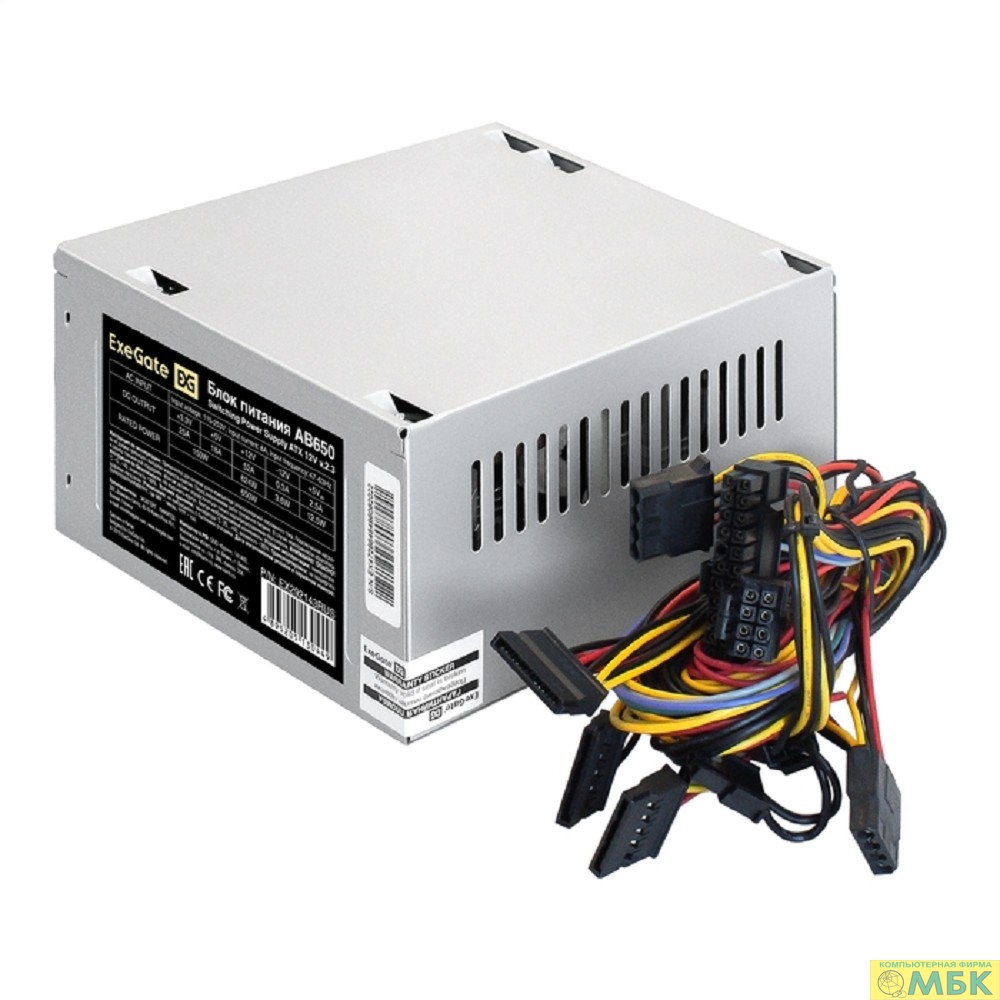 Exegate EX292143RUS-PC Блок питания 650W ExeGate AB650 (ATX, PC, 8cm fan, 24pin, 4+4pin, PCI-E, 3xSATA, 2xIDE, кабель 220V в комплекте)