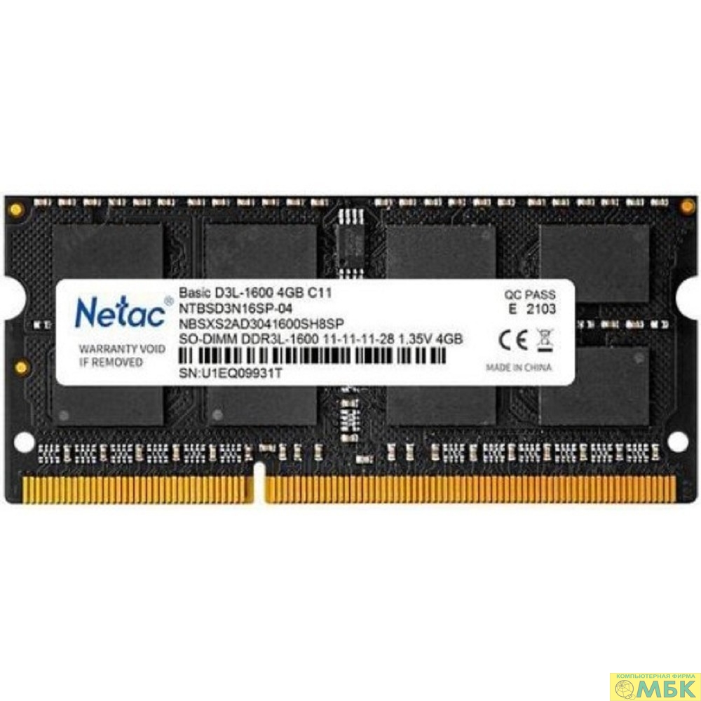 Netac SO-DIMM DDR3L 4Gb PC12800 1600MHz CL11 1.35V (NTBSD3N16SP-04)