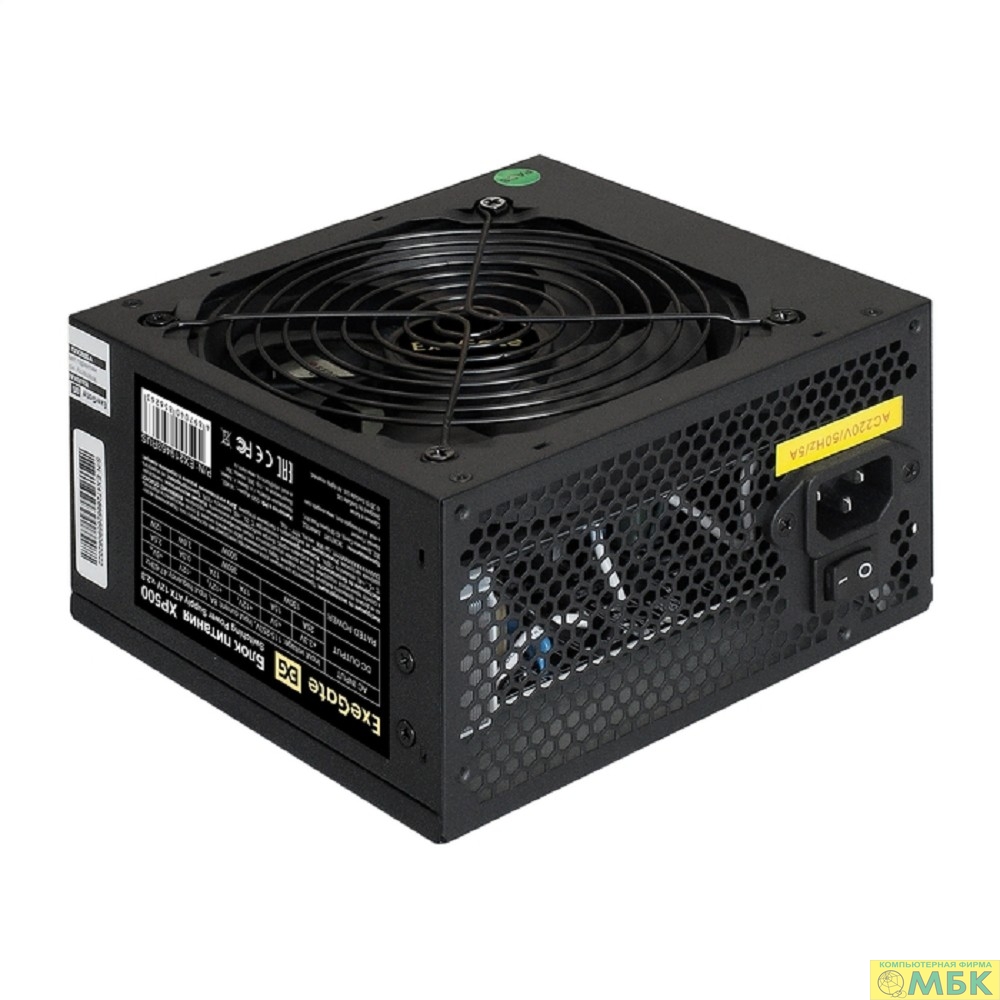 Exegate EX219463RUS-S Блок питания XP500, ATX, SC, black, 12cm fan, 24p+4p, 6/8p PCI-E, 3*SATA, 2*IDE, FDD + кабель 220V с защитой от выдергивания