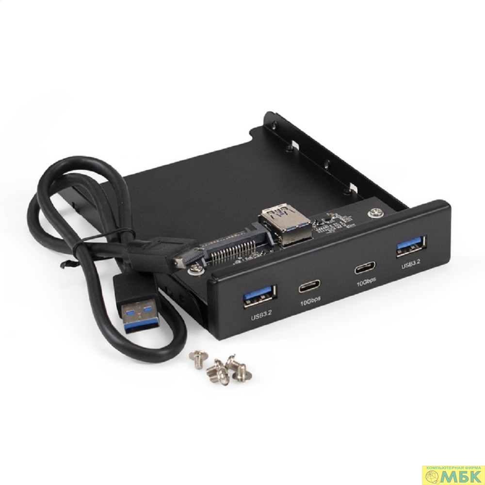 Exegate EX297553RUS Планка USB на переднюю панель ExeGate U3H-622, 3,5", 2*TypeA +2*TypeC (USB 3.2 Gen2 (SuperSpeed USB 10Gbps), черная, металл, подсоединение к мат. плате)