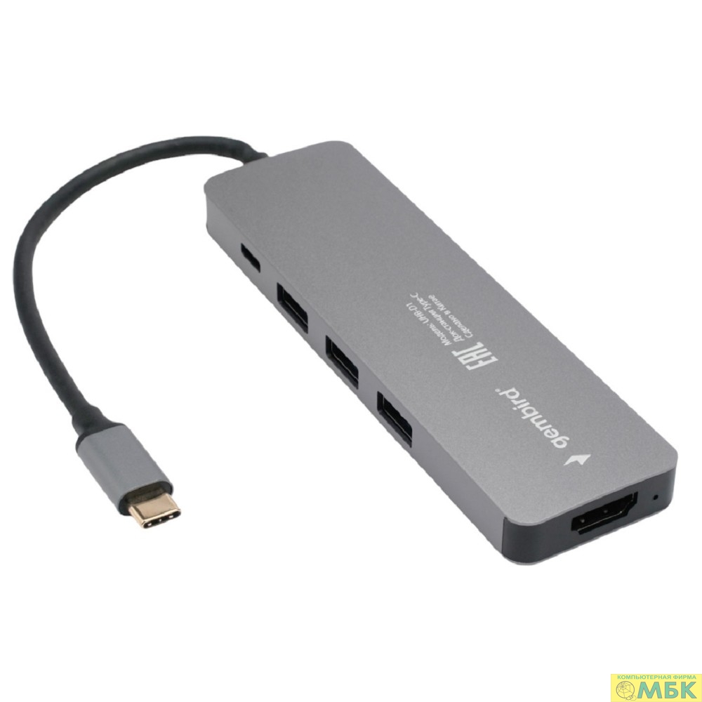 Gembird Док-станция Type-C 5в1: 3xUSB3.1, PD100W, HDMI, кабель 17см, алюминий (UHB-D1)